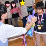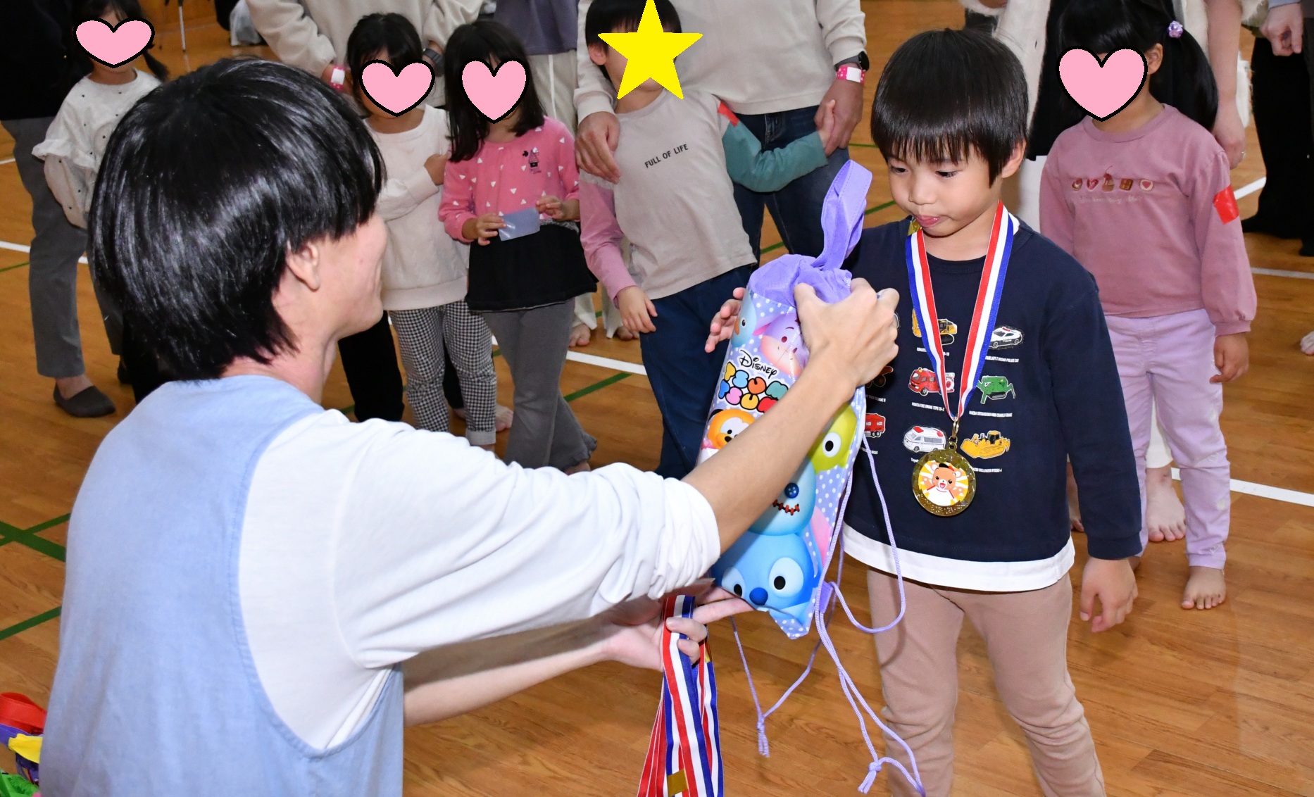 年長さんの閉会宣言で終わりをむかえて、🏅とお土産をもらいましたよ!