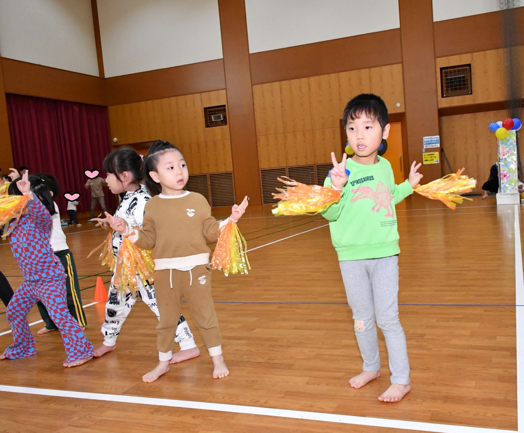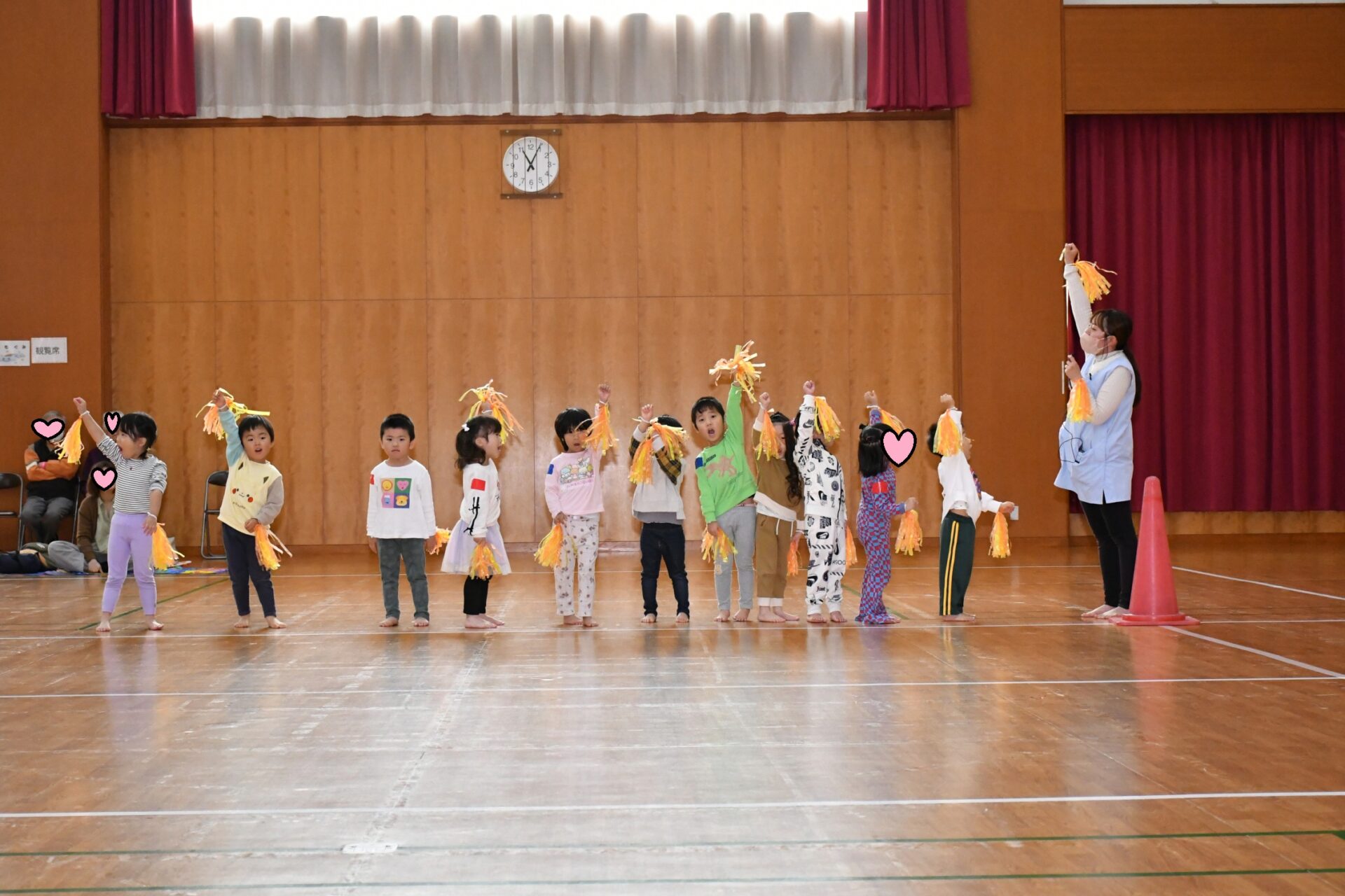 年長さんからの開会宣言にはじまり、準備体操としてバナナ体操を踊りました。