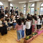 お楽しみもあり、お兄さんお姉さんたちから可愛い「ころころたまご」の手遊びと「たんぽぽ」のわらべ歌のプレゼント!先生からは「おはようおはよう」の紙芝居がありました!